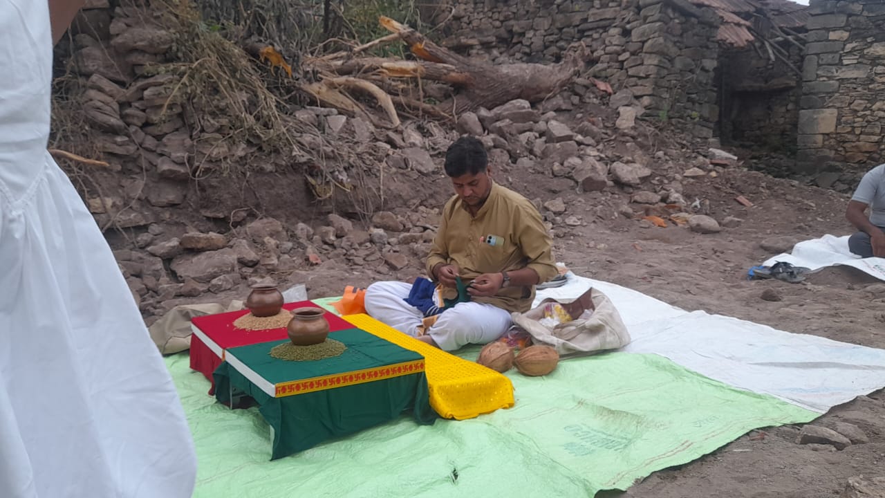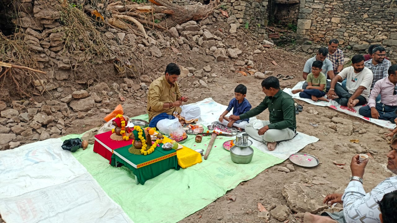 મંદિરના નિર્માણ કાર્ય પૂર્ણ થવાના શુભ અવસરે આયોજિત ધાર્મિક વિધિ.
