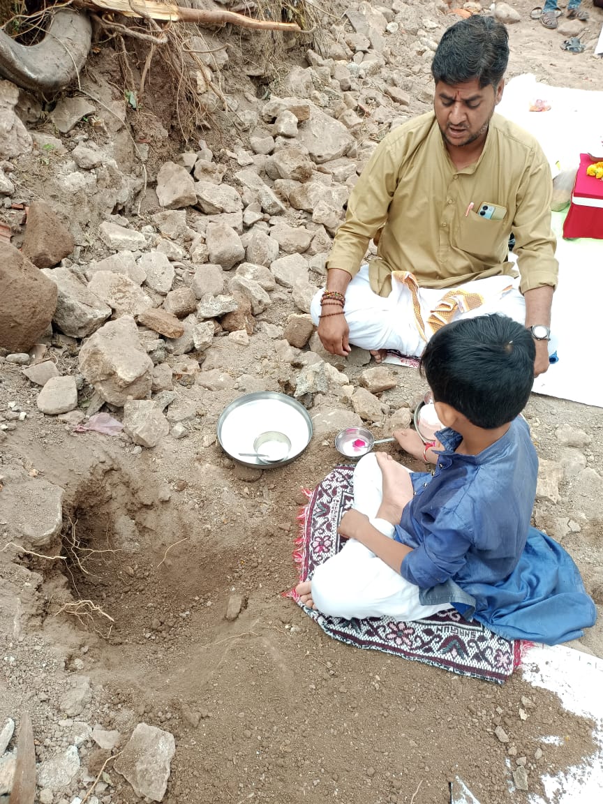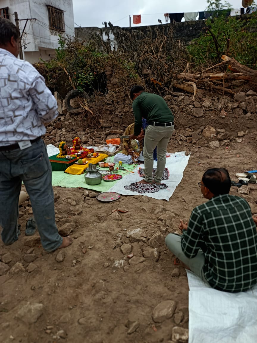 મંદિર નિર્માણ શરૂ કરતા પહેલાં કરવામાં આવતી પવિત્ર વિધિ. દેવી-દેવતાઓના આશીર્વાદ સાથે કાર્યની શુભ શરૂઆત માટે ભૂમિનું પૂજન કરવામાં આવે છે.